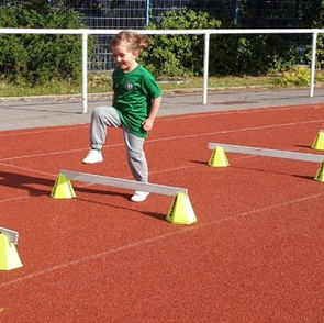 En hauteur, en longueur ou en triple saut, cette activité consiste à sauter le plus haut ou le plus loin possible. Bien que brève, elle est très intense et aide à perfectionner la coordination motrice, indispensable pour courir rapidement et sauter en toute sécurité.
